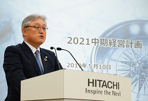新しい中期経営計画を発表した日立の東原敏昭社長