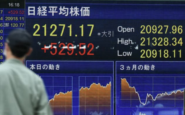 緊急事態宣言の全面解除に伴う経済活動の再開を機に、日本株に再びマネーが向かっている。26日の東京株式市場で日経平均株価は前日比で500円を超える上げ幅となり、3月5日以来約2カ月半ぶりに終値で2万1000円台を回復した。デジタル化の加速などコロナがもたらす社会の変化が追い風となる企業が上昇をけん引している。経済の回復が鈍い中では全体の底上げよりも、「新常態」を見据えた選別が強まりそうだ。