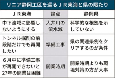 さらに県は開発面積が5ヘクタール以上の工事について、事業者と自然環境保全条例に基づく事前協定が必要としている。「協定締結まで数カ月かかる例もある。仮にJR側が月内に申請しても、短期間で許可が下りる可能性は低い」(県担当者)。リニアの27年開業は延期が避けられない情勢だ。