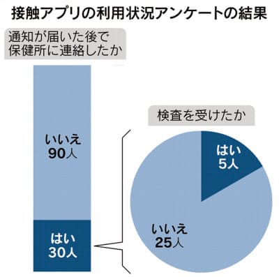 アプリを巡っては、利用者の感染が判明して日にちがたってから周囲の人に通知が届き、「もっと早く知りたかった」との声も出ている。アンケートでも感染者との接触日から10日以上たってから通知が届いたケースが目立った。
