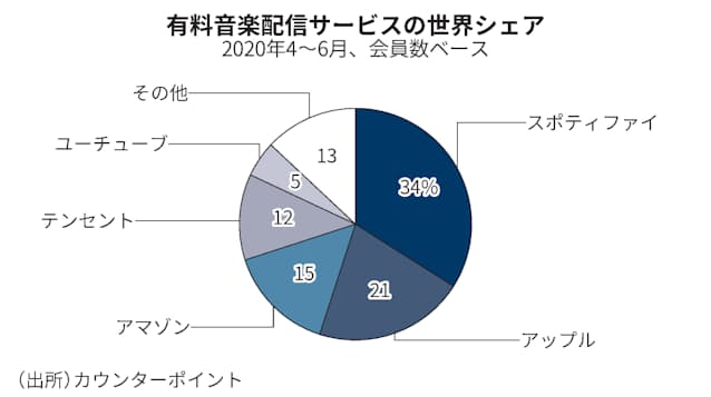新型コロナウイルス禍でも在宅勤務中の「ながら聴き」需要をつかみ成長を続けてきた音楽配信市場だが、風向きは変化しつつある。香港の調査会社カウンターポイントによると広告収入減や解約を防ぐための割引の拡大などが響き、2020年4~6月の市場規模は直近の四半期に比べ2%減の67億㌦となり、初めて縮小に転じた。シェア拡大にしのぎをけずる各社にとって、サービスに独自性を加えるポッドキャストの重要性は一段と高まることになりそうだ。