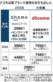 一方、急な値下げで携帯各社は次世代通信規格「5G」の投資余力をそがれる可能性もある。ある大手幹部は「今はまさに5Gインフラを構築する時期。値下げ要請のタイミングが悪すぎる」と嘆く。消費者還元と成長投資のバランスをどう取るのか。難しいかじ取りを迫られている。