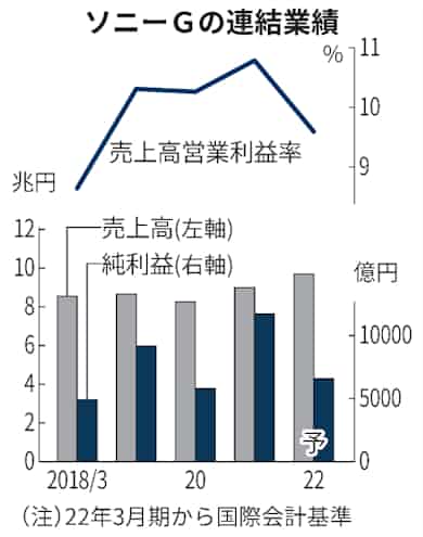 売上高は9%増の8兆9993億円だった。ゲーム、音楽、映画を含むエンタメ事業の売上高は13%増の4兆3549億円と、全体の5割を占めた。定額で対戦やソフトで遊べる「プレイステーション(PS)プラス」会員が増えた。ソニーグループが権利をもつ楽曲のストリーミング再生など、リカーリング(継続課金型)収入も好調で、半導体不足が懸念された「PS5」の販売台数は780万台と、目標を上回った。