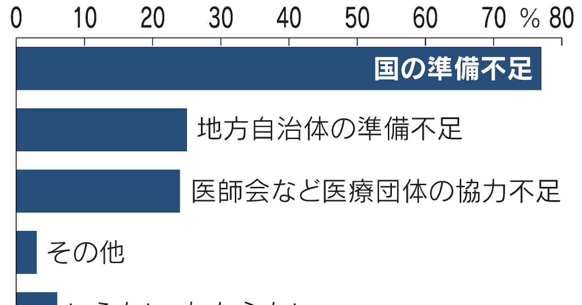 「地方自治体の準備不足」を挙げた割合は25%で「医師会など医療団体の協力不足」は24%だった。