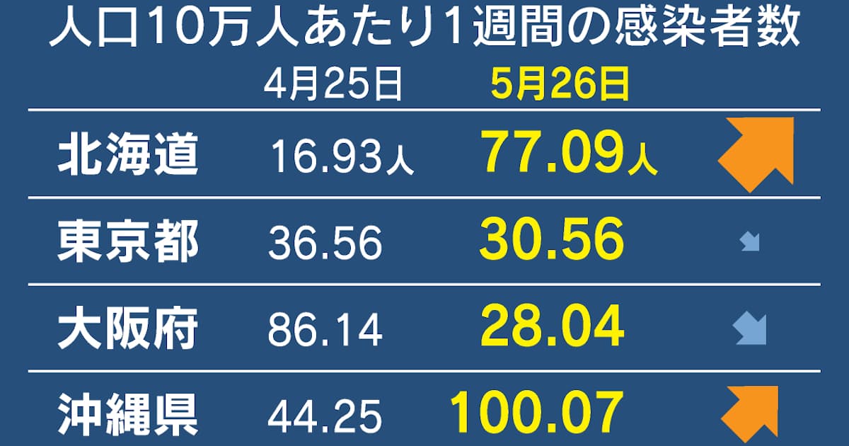 新型コロナウイルスの緊急事態宣言が適用されている地域の多くは、新規感染の拡大に歯止めがかかっていない。適用中の10都道府県のうち、8地域は国の指標で「感染爆発」にあたる。過去の緊急事態に比べて人出の減り方が鈍く、早期解除は感染のリバウンドを招く懸念もある。
