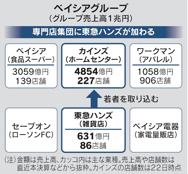 「これまでカインズでM&A(合併・買収)はしなかった。市場が飽和するなかで、単純な規模拡大は追求しない。今回は買収というよりパートナーとして迎え入れた。(消費者は)家事や料理をきっかけにカインズに来るし、困りごとを解決するために東急ハンズに行く。両者が連携して新しい暮らしを根付かせたい」