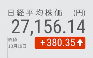 18日の東京株式市場で日経平均株価は反発し、前日比380円35銭(1.42%)高の2万7156円14銭で終えた。前日に米株式相場が上昇した流れを引き継ぎ、幅広い銘柄が買われた。円安・ドル高傾向に加え、アジア株高、英中銀の引き締め再延期を巡る報道も支えとなった。