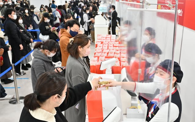 同店では3年ぶりに縁起菓子の配布や伝統芸能のステージなどイベントも開いた。久保田俊樹店長は「想定以上に来店客が多く、ほっとしている。インバウンド(訪日外国人)も戻ってきており、今年1年ではコロナ禍前の19年並みの売り上げに戻したい」と意気込んだ。1日の売り上げは前年比10%増を見込んでいる。