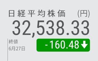 27日の東京株式市場で日経平均株価は4日続落し、前日比160円48銭(0・49%)安の3万2538円33銭で終えた。日経平均が4日続けて下げたのは今年初めてで、2022年12月中旬に5日続落して以来の長さ。米連邦準備理事会(FRB)による利上げ長期化観測を背景に、値がさの成長(グロース)株の一角が売られた。日経平均の下げ幅は一時400円に迫った。一方、押し目買いも入って底堅い展開となった。