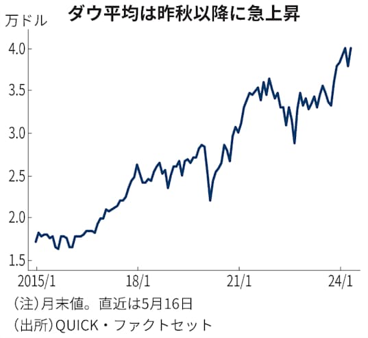 堅調な企業収益への期待も株式相場を押し上げている。QUICK・ファクトセットの集計によると、S&P500採用銘柄の24年の1株当たり利益(EPS)は前年比11%増と3年ぶりの高い伸びになる見通しだ。